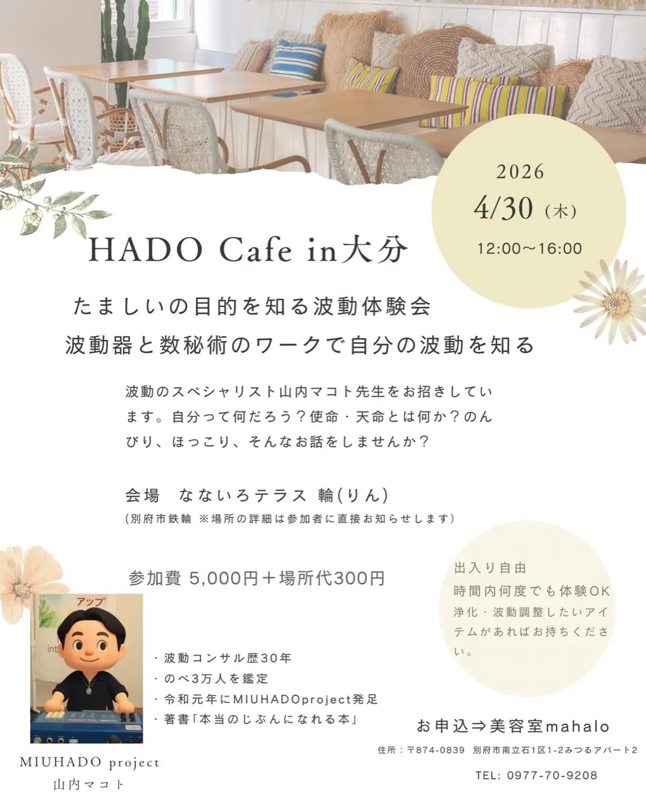 4/30(木)今回も鉄輪の「なないろテラスりん」さんで開催します。
